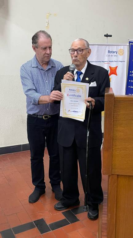 Outros participantes do encontro: Edson Tambelli, primeiro diretor de protocolo, leu uma mensagem enviada pelo Governador Paulo Kudo, justificando a sua ausência, cumprimentando as mães e destacando a comitiva do clube tatuiano para a VI Conferência Distrital. Até agora, a delegação está composta por 49 pessoas (23 associados, 24 familiares e duas intercambistas. Juliano Silveira, segundo diretor de protocolo, deu continuidade aos trabalhos formais da cerimônia. O secretário Rafael Ramos detalhou a programação da Conferência Distrital, que homenageará o inesquecível companheiro Simeão Sobral, fundador do nosso clube. Explicou que ainda existe a possibilidade de outros fazerem a inscrição. Fernando Henrique Andrade realizou o companheirismo com muita alegria. Após informar os aniversariantes e as datas comemorativas da quinzena, ele efetuou perguntas aos presentes, valendo prêmios aos acertadores, doados por Priscila Segalla, da Casa da Amizade. As vencedoras foram Beatriz Yaiko Yamamoto, Sônia Maria Leite Camargo de Jesus e Valentina Acosta Elias. Nos avisos finais da reunião, o presidente Godoy informou que o Rotary e o Rotaract Clubs de Tatuí trabalharão em parceria na barraca de batata frita na “Festa dos Estados” do Recanto Betel, no dia 24 de maio, das 10h às 22h, no Clube de Campo de Tatuí. Disse também que o companheiro Luís Barros, presidente da Comissão de Imagem Pública, está trabalhando para restaurar as identificações nos quadrinhos da Galeria de Presidentes do clube. E também no conserto do marco rotário alusivo ao Cinquentenário do RC de Tatuí, na Praça do Museu. O símbolo foi depredado por vândalos.