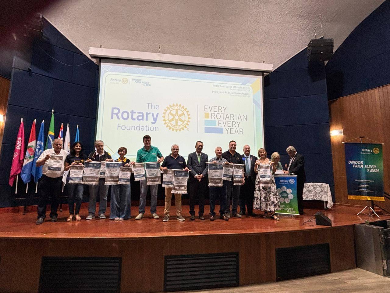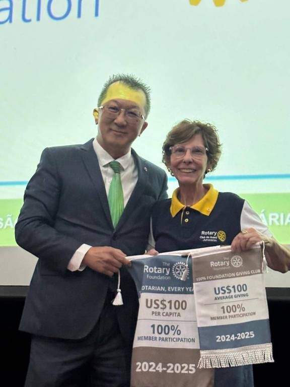 O Rotary Club de Avaré Jurumirim recebeu as Flamulas da Fundação Rotária referentes ao ano 2024/2025, da presidente Rosemary Craveiro, de Club Erey, Rotarianoso todos os Anos que é o reconhecimento por ter contribuido com mais de $100 por percapta para a Fundação Rotária, além do Reconhecimento dos Curadores da Polio, por ter contribuido com mais de $1500 ao Fundo Pólio. Na oportunidade também houve o reconhecimento dos novos membros da Polio Societe Rosemary Craveiro, Neto Acacio, Diego Leite, Silmara Rodrigues e Wagner Belarmino.