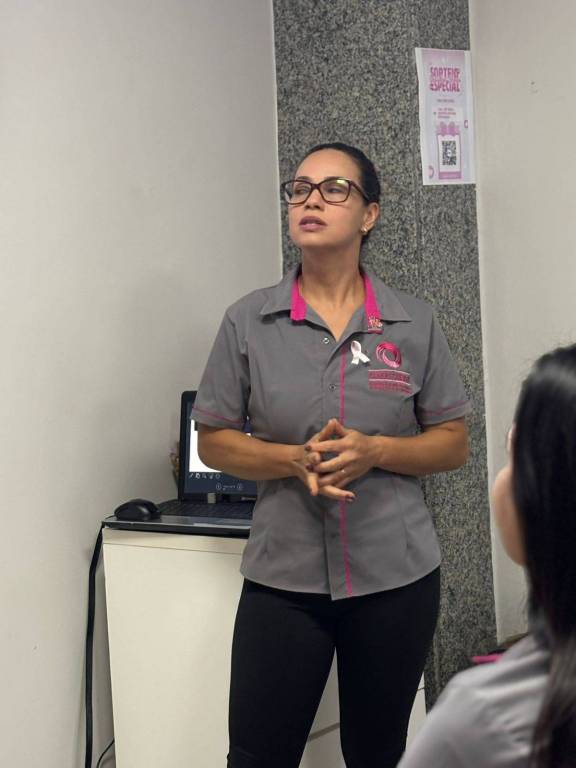 A ação teve como objetivo reforçar a importância da prevenção e do diagnóstico precoce do câncer de mama, levando conhecimento de forma clara e acolhedora. Mais do que falar sobre saúde, foi um encontro para despertar a atenção para o autocuidado, a realização de exames periódicos e a importância de observar os sinais do próprio corpo.