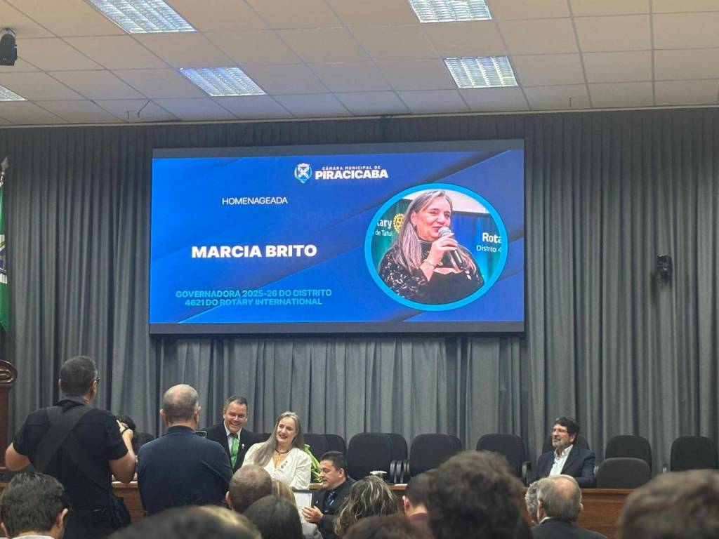 Na noite de ontem, dia 24/02/26, a Governadora do Distrito 4621, Márcia Brito, e o Coordenador Neto Acácio, ambos associados ao Rotary Club de Avaré-Jurumirim, foram homenageados pela Câmara Municipal de Piracicaba durante sessão solene em comemoração aos 121 anos de fundação do Rotary International.