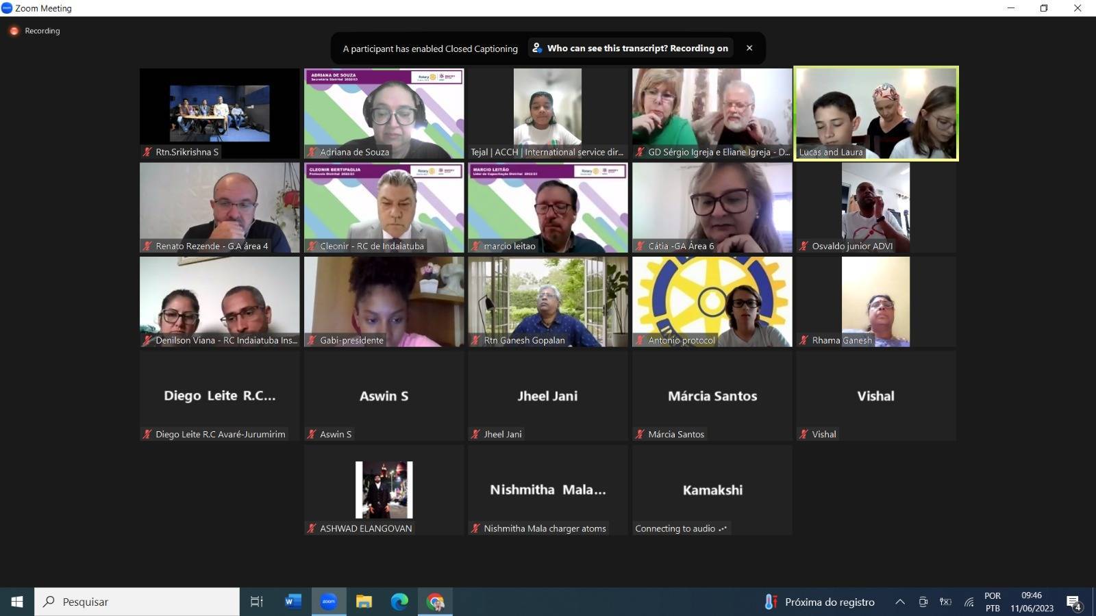 Em 11/06/2023, o Rotakids de Indaiatuba e o Rotakids Annetes da Índia fizeram o encerramento das atividades de intercâmbio cultural que realizaram durante todo este ano rotário. Uma boa oportunidade de conhecer um pouco mais sobre língua, comida e cultura de uma maneira geral.Contaram nesta reunião com a participação do Governador Sérgio Igreja e da coordenadora Eliane.